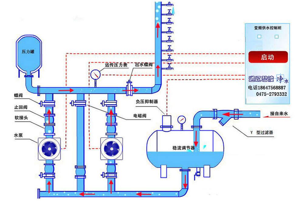 無(wú)負(fù)壓供水系統(tǒng)是采用先進(jìn)的微機(jī)控制技術(shù),結(jié)合高性能變頻調(diào)速器,根據(jù)生活用水量的多少自動(dòng)調(diào)節(jié)水泵轉(zhuǎn)速或增減運(yùn)行水泵的臺(tái)數(shù),實(shí)現(xiàn)恒壓供水。該系列無(wú)負(fù)壓供水系統(tǒng)設(shè)備壓力穩(wěn)定可靠,高效節(jié)能,是生活小區(qū)、自來(lái)水廠、工礦企業(yè)等理想的供水設(shè)備。